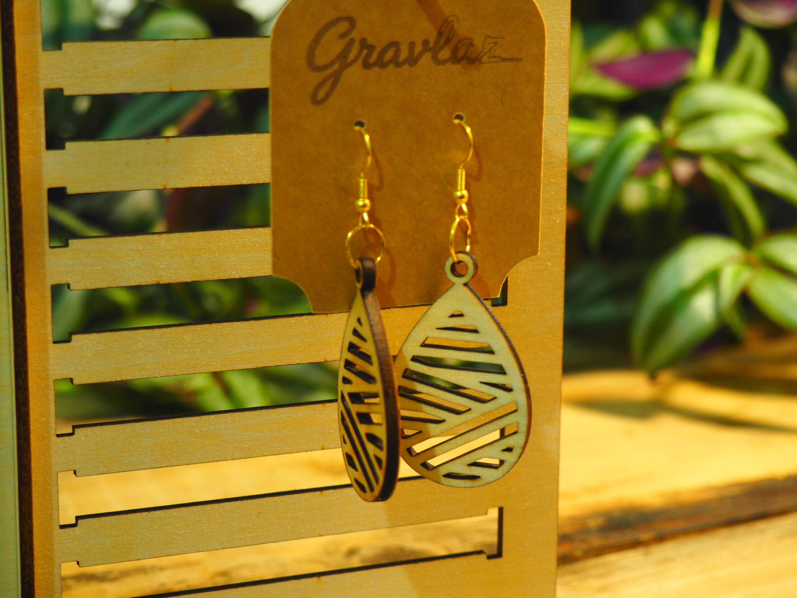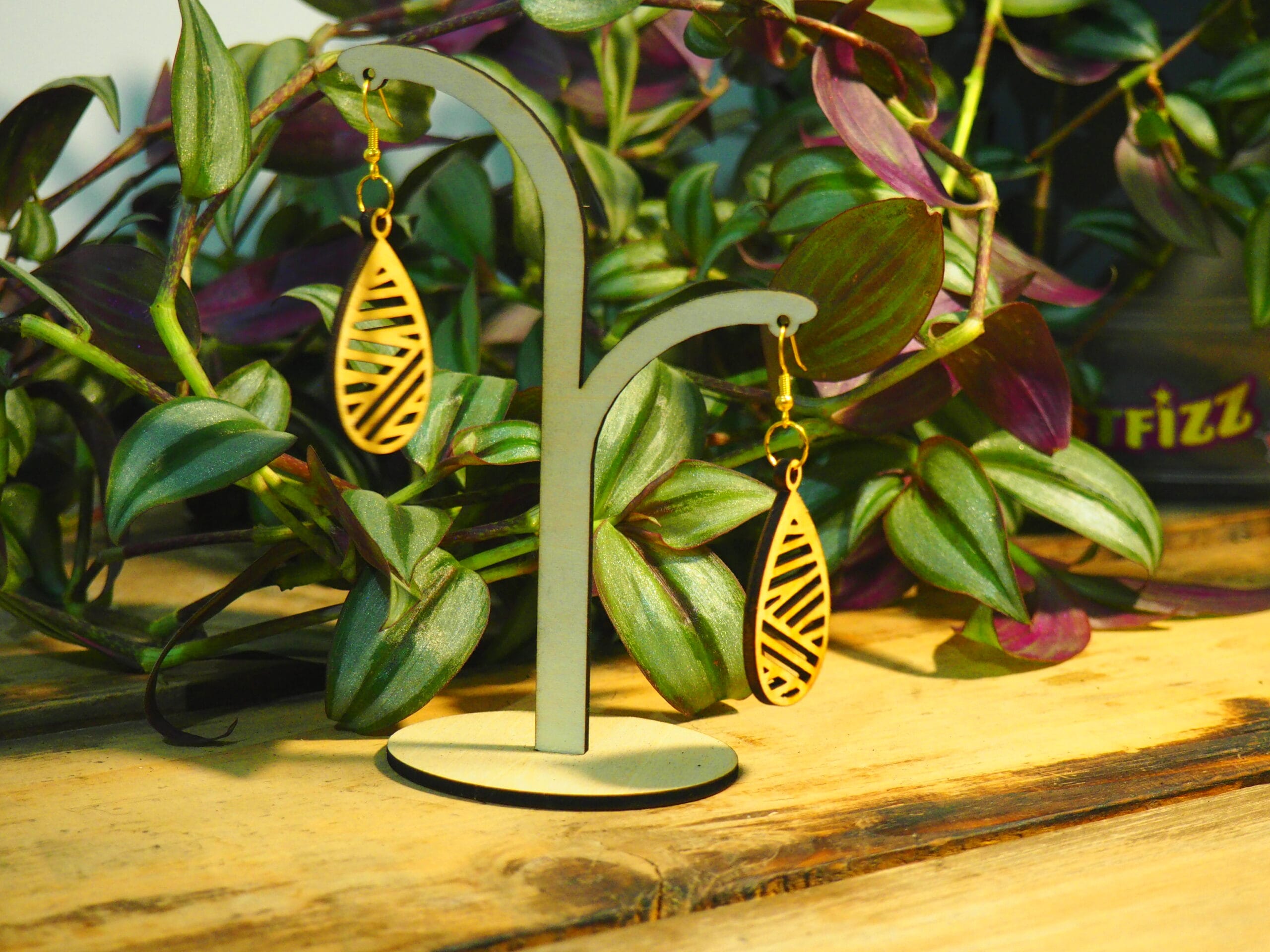 Boucles d’Oreille En Bois Alliant Découpe Laser Et Finitions Manuelles.