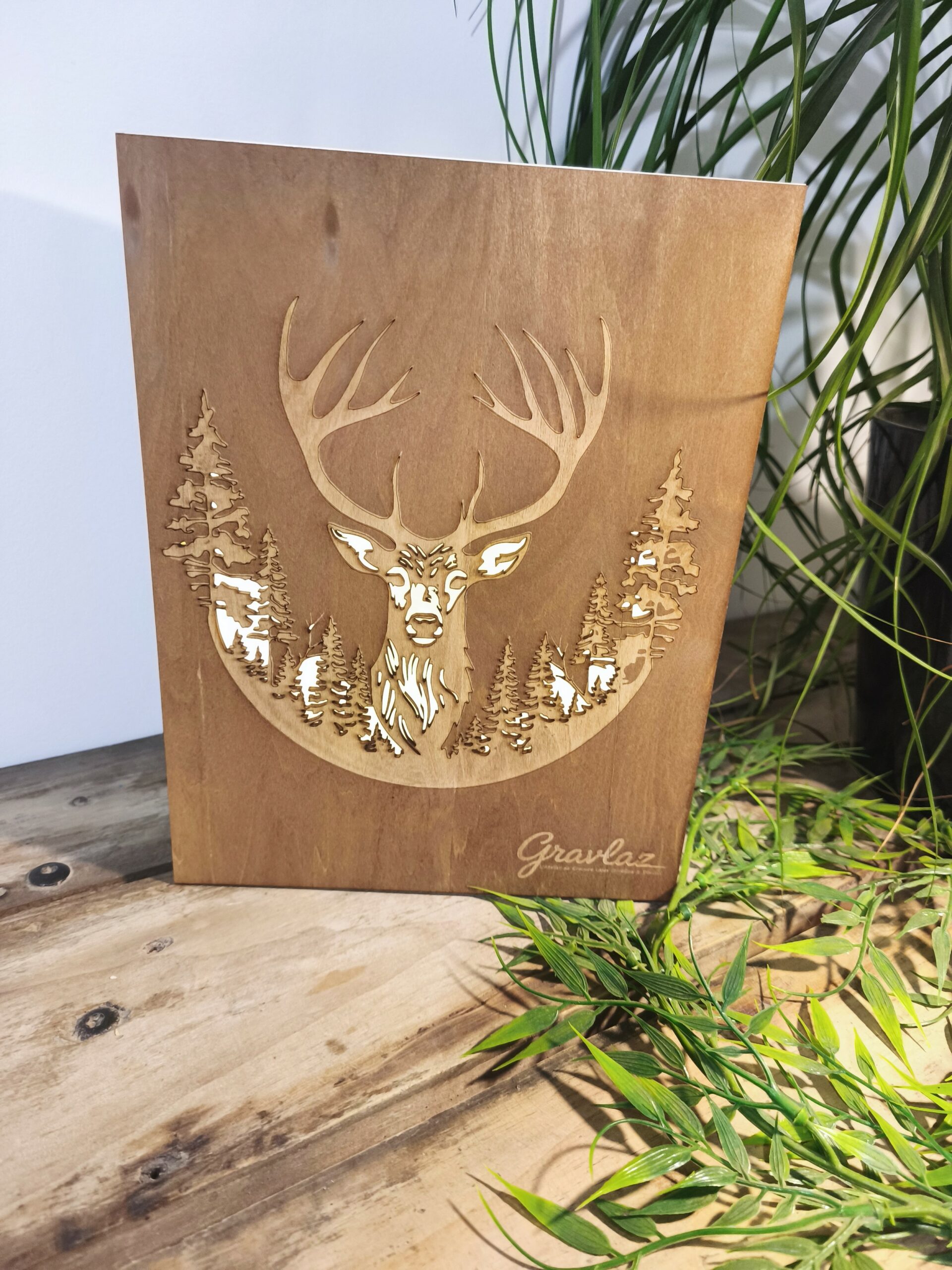 Sur une base de cadre lumineux sélectionné pour sa qualité, nous apposons une création Gravlaz exclusive. Chaque visuel est dessiné, découpé au laser et assemblé à la main dans notre atelier en Ardèche pour un rendu en relief et une personnalisation sur mesure.